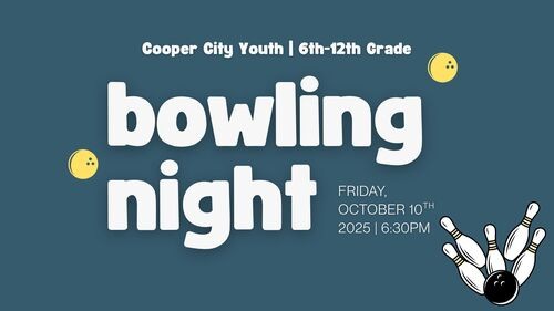 Middle and High School Students are invited to join us on Friday, October 10 at 6:30pm at Sparez Bowling in Davie. The cost is just $15 per student, which includes bowling, shoe rental, and food. This will be a student-only event led by Youth Pastors Kenny and Giovanna along with our youth leaders. Don’t miss this chance to connect, laugh, and enjoy an exciting night together!